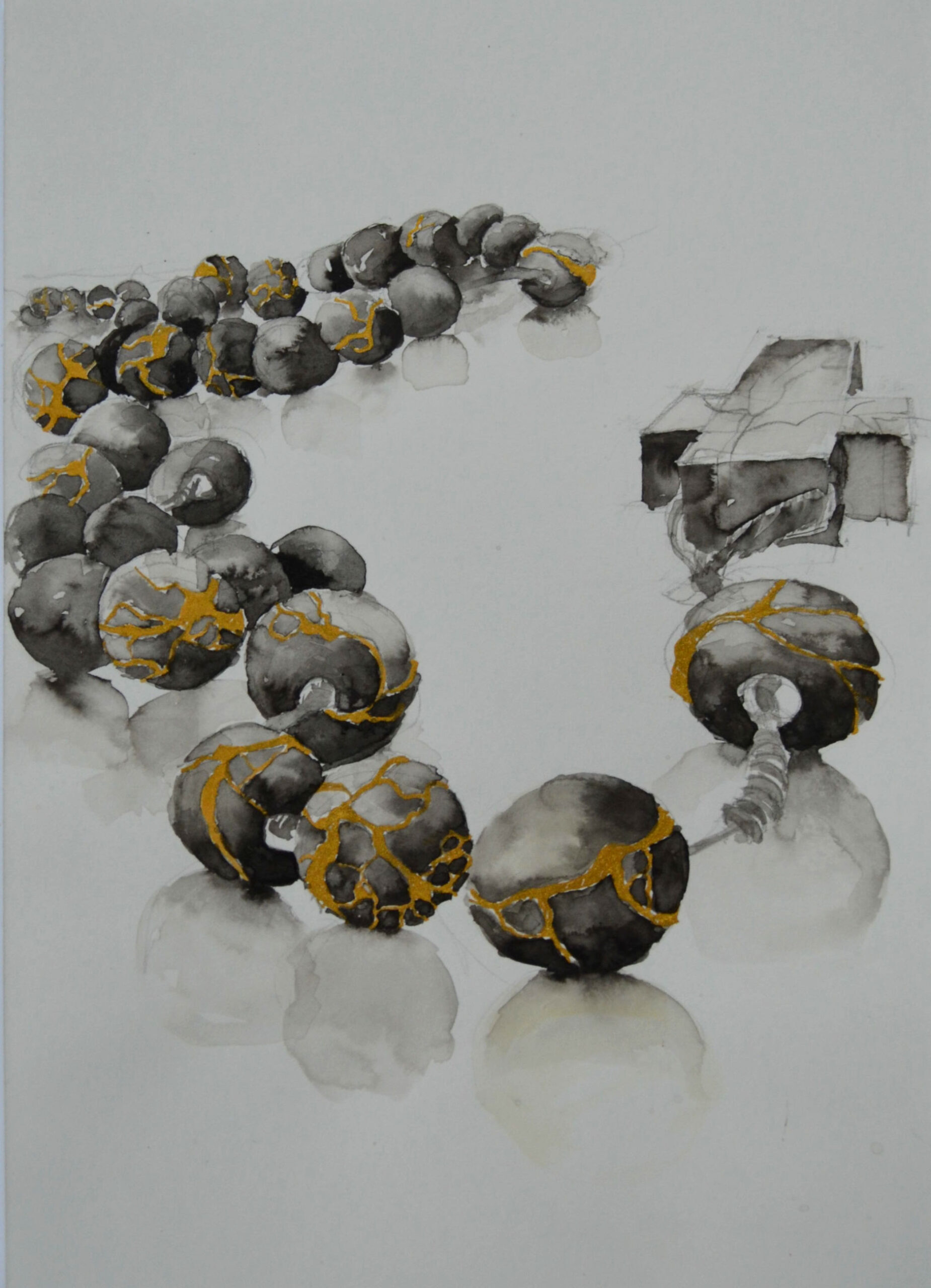 pomysł na to hasło miałam zupełnie inny, jednak różaniec z koralikami poklejonym metodą kintsugi chciał być narysowany