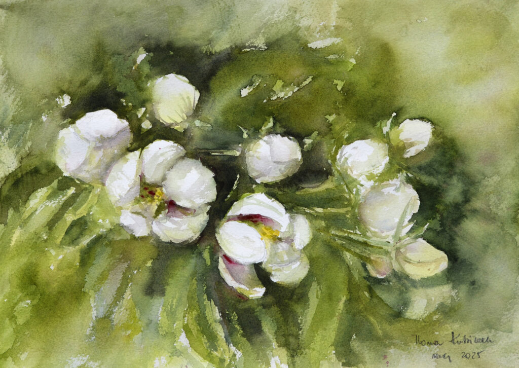 Portrety roślin i drzew jesteśmy przyzwyczajeni do portretów ludzi, ja portretuję rośliny i drzewa, są bardziej wyrozumiałe i tolerancyjne na brak podobieństwa Kwiat jabłoni akwarela 28x38cmrok powstania: 2025 ……….600 zł Naparstnica purpurowa akwarela 38x28cmrok powstania: 2025 ……….600 zł Liliowce akwarela 28x16cmrok powstania: 2025 ……….200 zł Kaczeńce akwarela 38x28cmrok powstania: 2025 ……….600 zł Przebiśniegi akwarela 38x28cmrok powstania: 2025 ……….600 zł Kwietniowy spacer akwarela 38x28cmrok powstania: 2024 ……….500 zł Majowe brzozy akwarela 38x28cmrok powstania: 2024 ……….w kolekcji prywatnej Jesienny spacer akwarela 38x28cmrok powstania: 2024 ……….w kolekcji prywatnej Kwiat wiśni akwarela 56x38cmrok powstania: 2024 ……….750 zł Czosnek akwarela 28x15cmrok powstania: 2025 ze szkicownika Wierzba z akacjowej akwarela 38x28cmrok powstania: 2023 ……….400 zł Nad stawem ołówek, format A3rok powstania: 2022 ……….w kolekcji prywatnej Brzozy ołówek, format A3rok powstania: 2022 ……….300 zł Dzika róża ołówek, format A3rok powstania: 2021 ……….300 zł Zimowy las ołówek, format A3rok powstania: 2021 ……….300 zł ILONA KUBICZEK Sprawy formalne Regulamin serwisu Polityka prywatności WIĘCEJ O MNIE Kim jestem? OBSERWUJ MNIE ObserwujObserwuj Kontakt poczta@ikubi.art501 421 278 Dane kontaktowe
