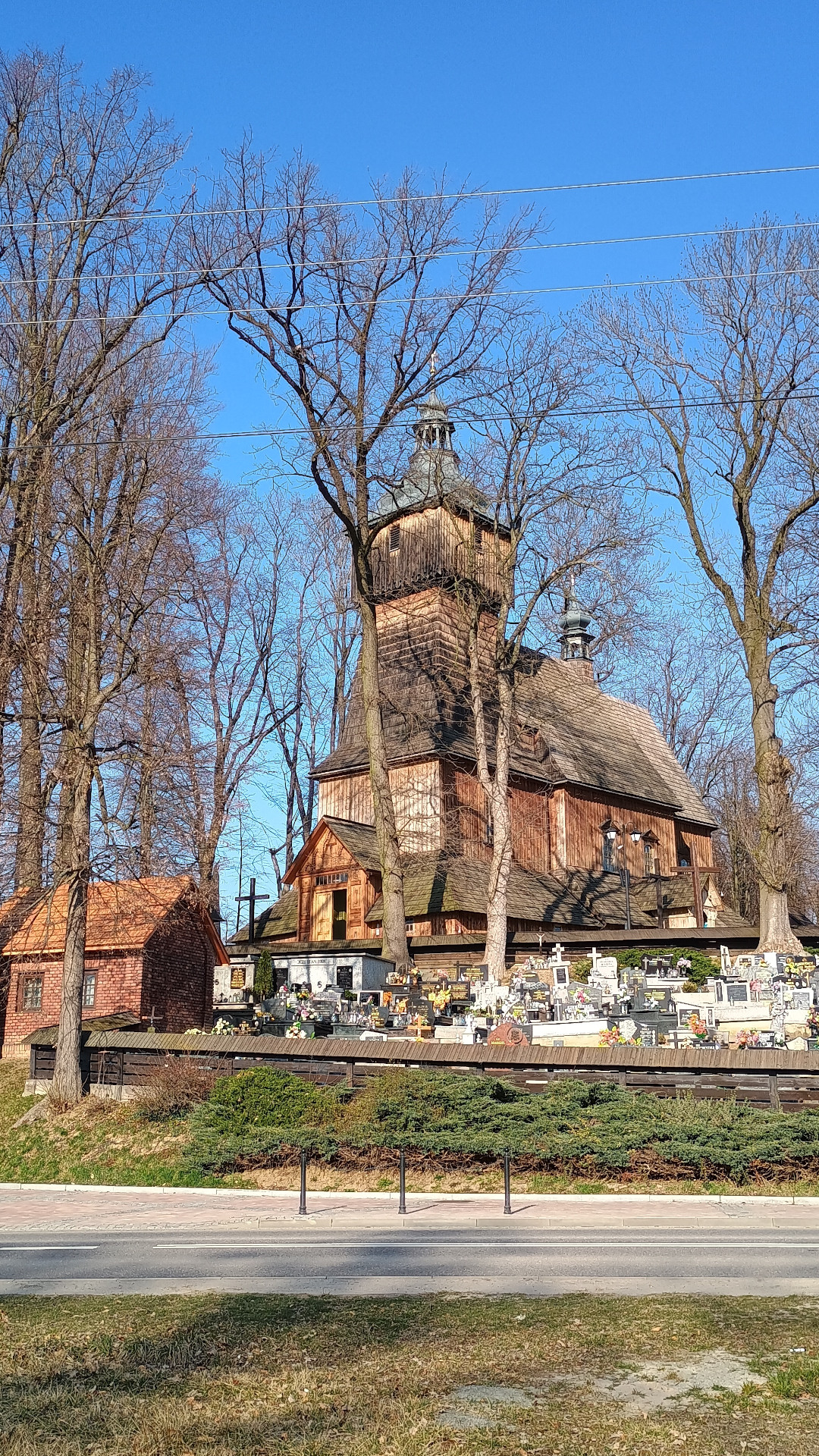 jest tam zabytkowy drewniany kościół pw. Podwyższenia Krzyża Świętego
